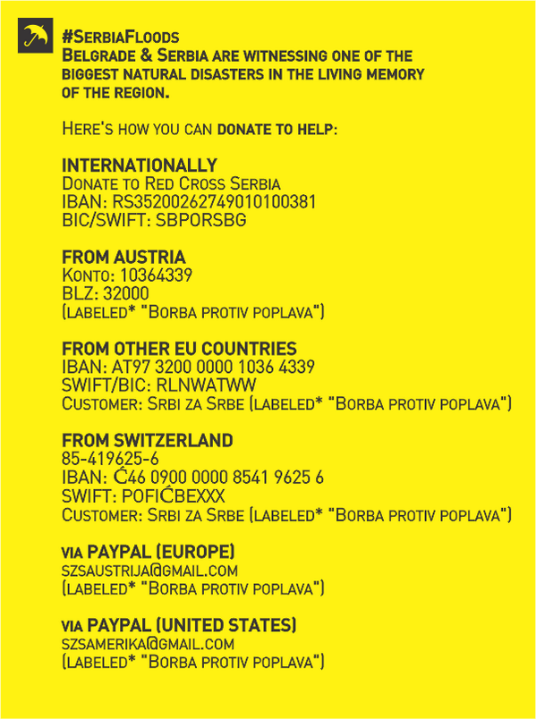 So, Serbia is witnessing one of its biggest natural disasters in living memory. We're flooded and it's pretty scary. If you want to help here is link https://pbs.twimg.com/media/BnyCW_WCIAACJjn.png:large